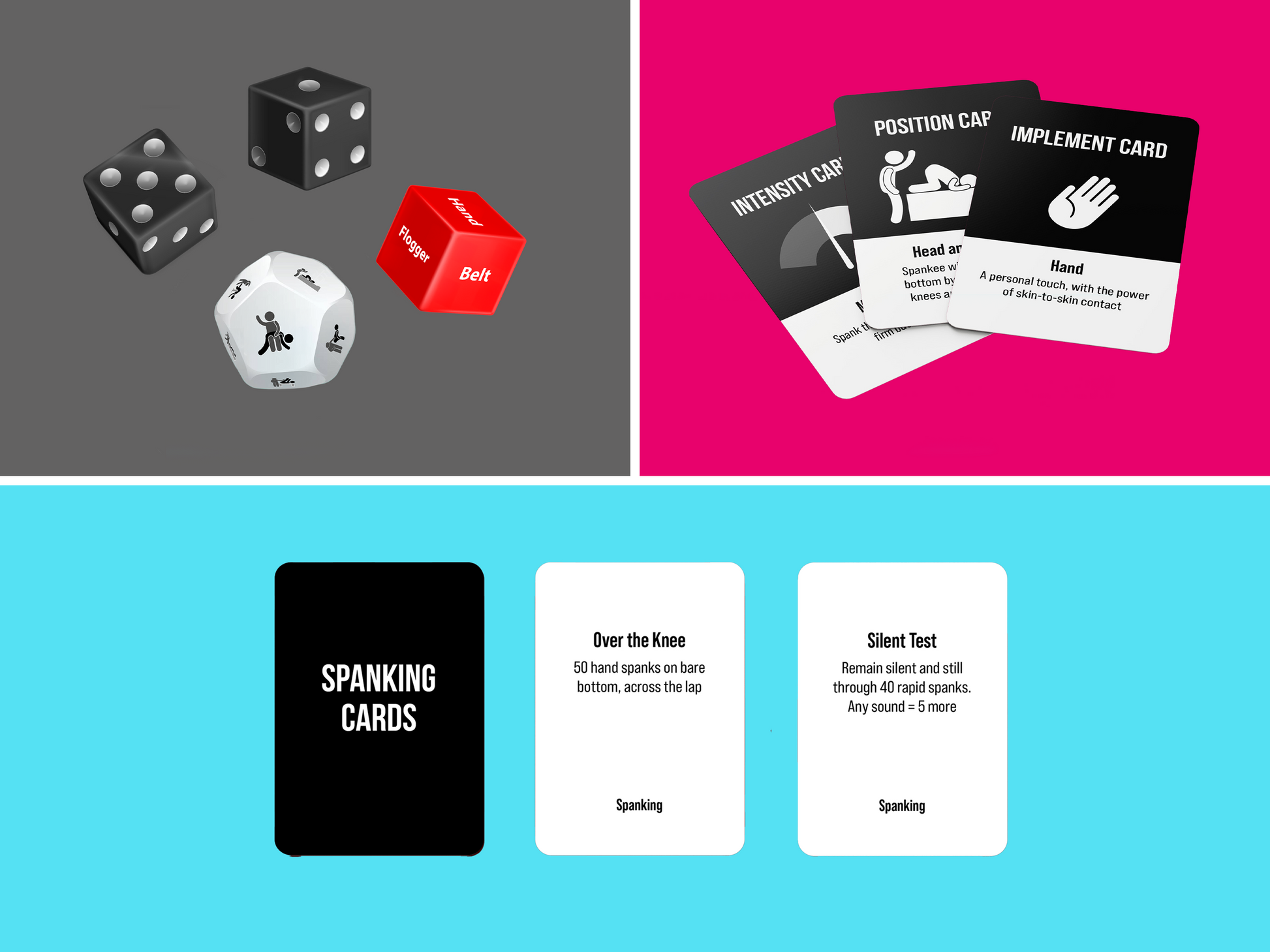Get Dice of Discipline, Master the Set AND 25 Spanking punishment cards in this ALL Spanking Game Bundle! Save money by buying all three. And what's not to like about a good Spanking? I'd say three is better than one.